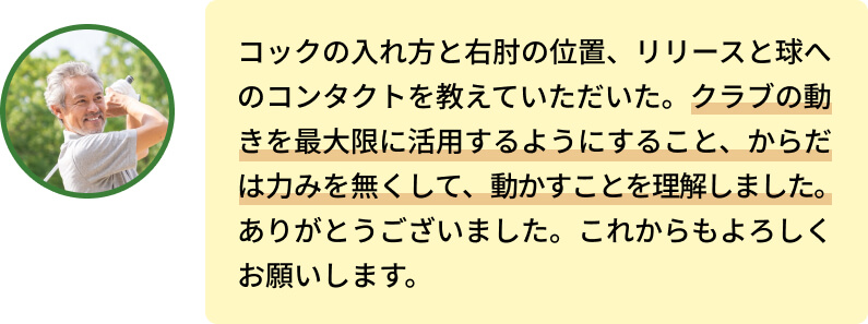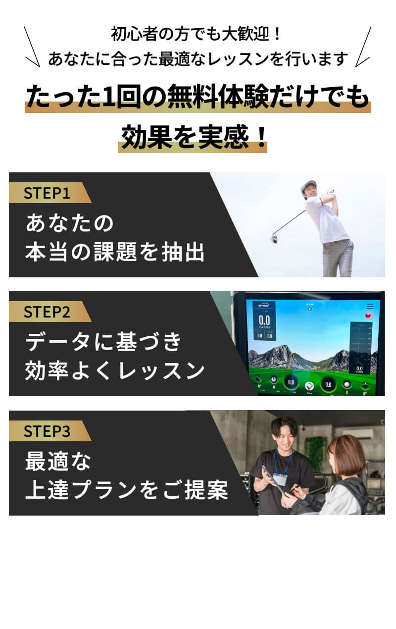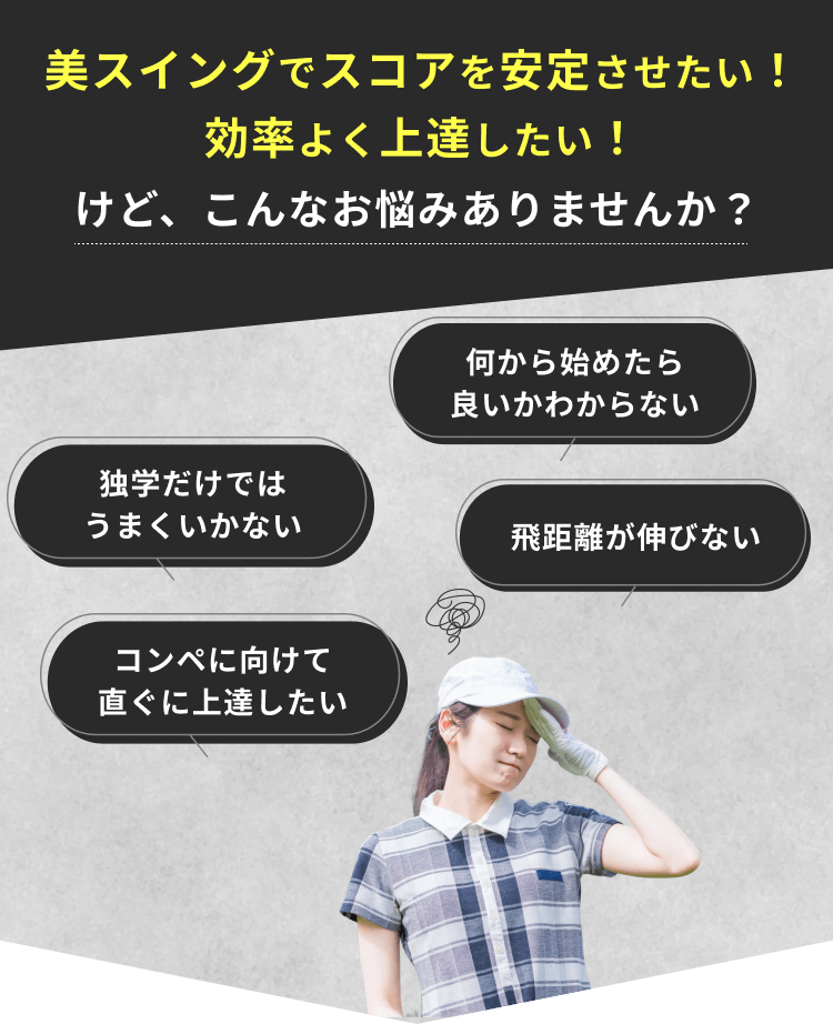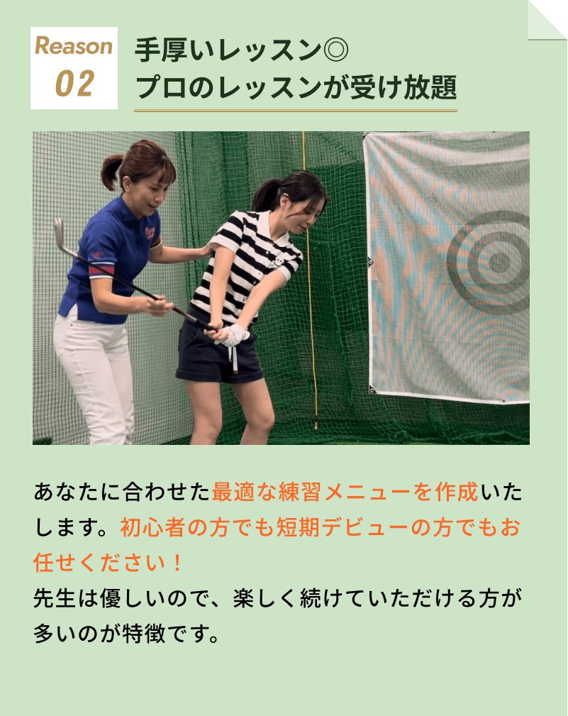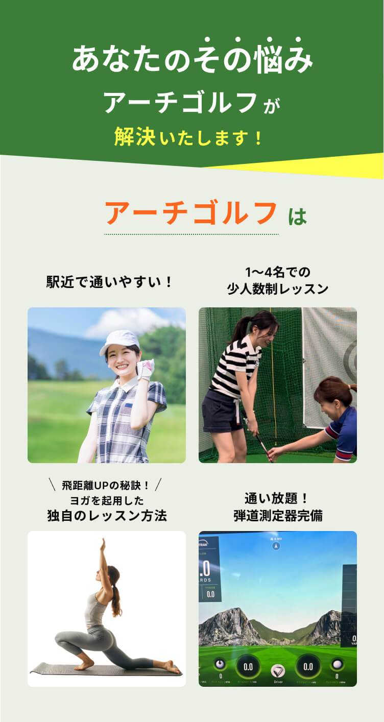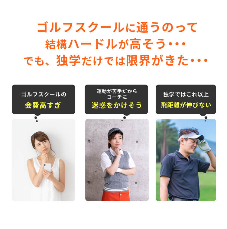 全然問題ありません。運動苦手の方やゴルフ初心者の方が実際に多いです。例えあなたが、スポーツに自信がなくとも、必ず上達します!お任せください!